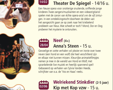 Een kindvriendelijke opera, een knotsgekke theatervoorstelling of eens goed lachen en brullen? Laat jullie zintuigen prikkelen!